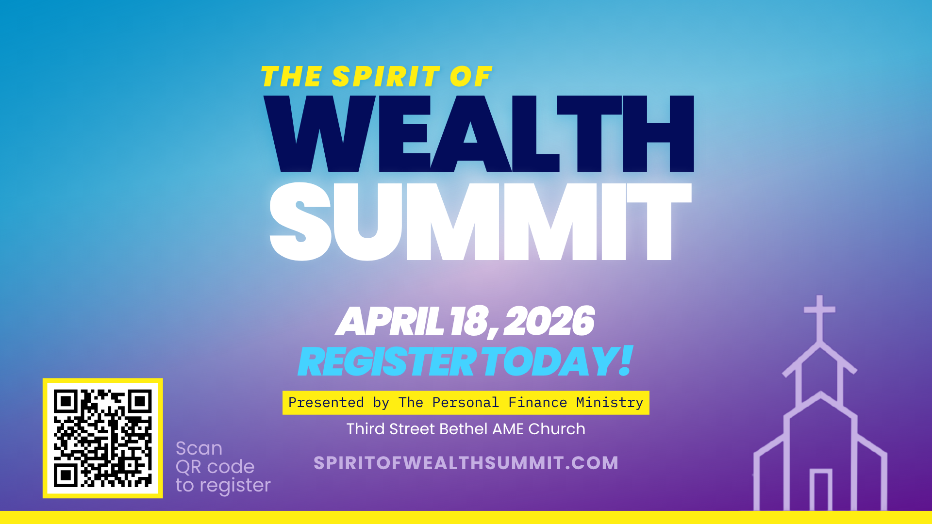Join us for the Spirit of Wealth Summit on April 18, 2026 at Third Street Bethel A.M.E. Church in Richmond.